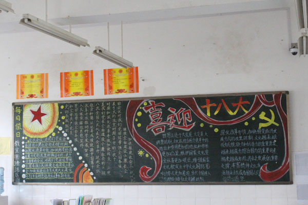 “建文明学校,办和谐教育”。为了迎接党的十八大胜利召开,龙泉中学校团委组织开展了“喜迎十八大”主题黑板报评比活动。各班同学们积极参与,精心设计,用绚丽的色彩和热情洋溢的文字表达对党的十八大胜利召开的期盼,展示了青年学生的爱国热情和对祖国美好未来的憧憬。